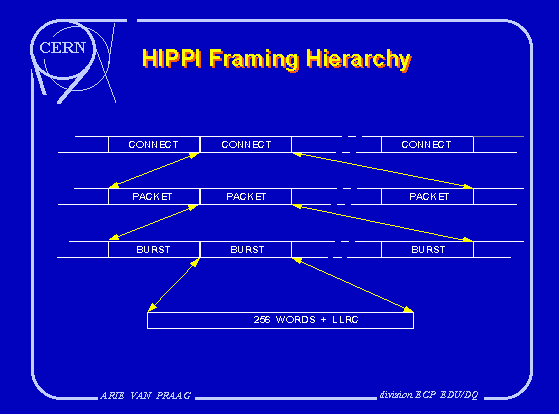 The HIPPI provides support for low-latency, real-time, and variable-size packet transfers. The signal sequences provide look-ahead flow control to allow the average data rate to approach the peak data rate, even over distances of tens of kilometres. This is a benefit for future, fibre-optic versions of the HIPPI. Data transfers and flow control are performed in increments of bursts, with each burst nominally containing 256 words (1024 or 2048 bytes).